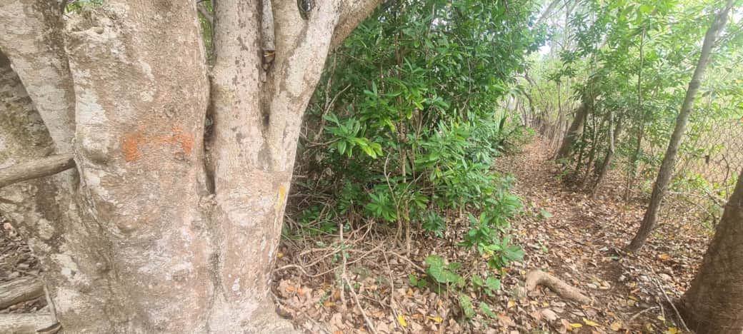 En partant de la côte, prenez la route du collège. Dans le dernier virage avant le jardin botanique, se trouve l'accès au parcours de la grande ravine. Le passage se trouve le long de la clôture. Puis arrivé à ces 2 arbres, restez sur le chemin de gauche. Ensuite suivez le long de la clôture jusqu'à l'indication de virer à droite comme indiqué sur l'arbre ci-dessous. Continuez en suivant le sentier. Quelques marques subsistent sur les arbres ou pierres mais une fois dans la ravine le sentier est unique. Arrivé sur la fin du parcours de la ravine, un superbe panorama se dévoilera devant vous. Un dernier effort vous amènera jusqu'au chemin du plateau. A gauche vers la chapelle du Calvaire et à droite vers les éoliennes du Souffleur.